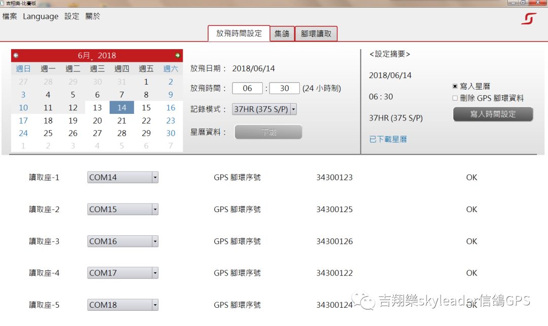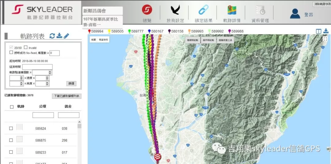 2018年6月10日台湾云林斗六新顺昌海翔鸽会,夏季比赛资格赛第一关,所有参赛鸽全部佩戴吉翔乐GPS轨迹追踪器圆满结束。